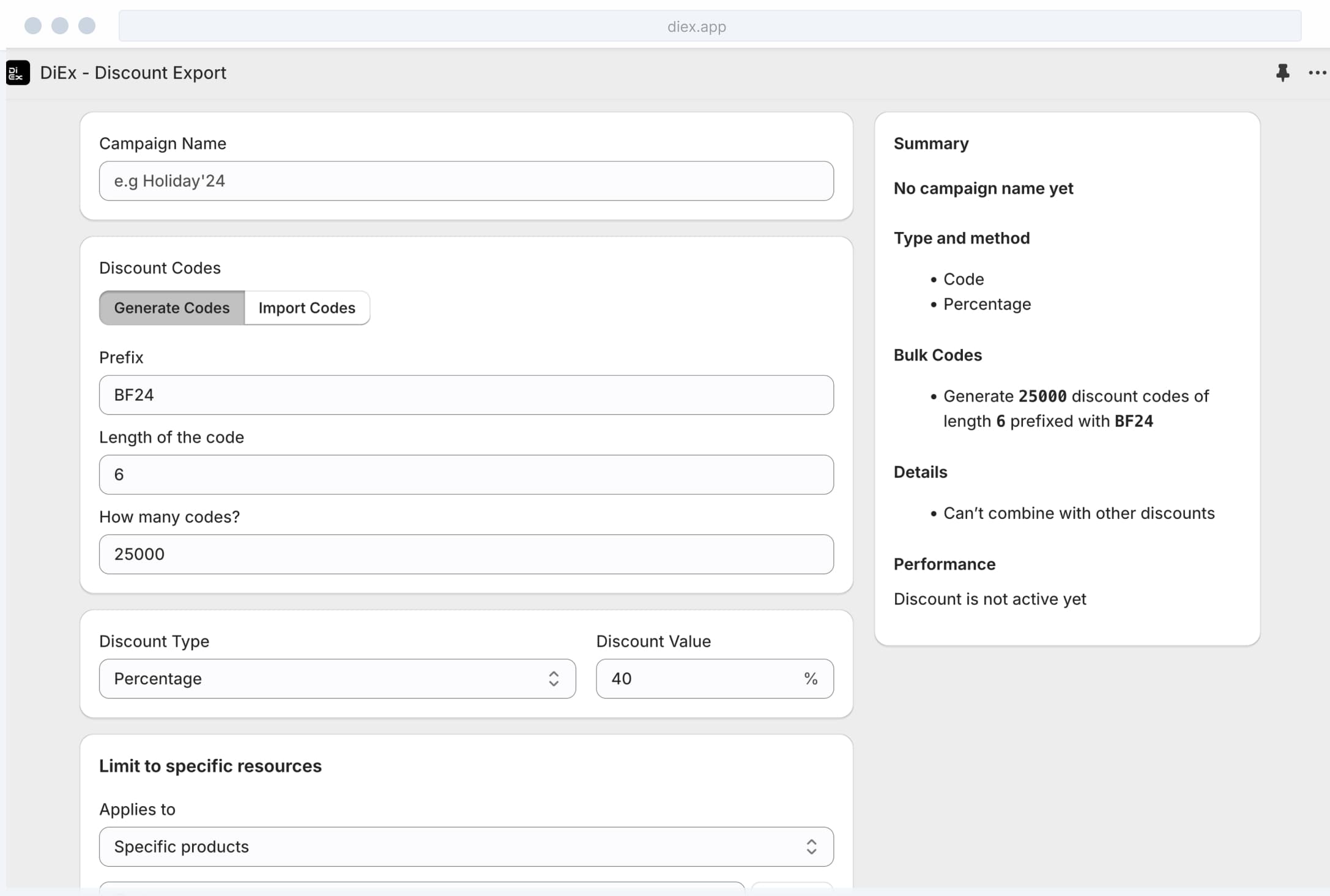No, Discount Expert does not limit the number of discount codes you can create. You can generate as many as you need to support your sales strategies. However, please note that Shopify may impose its own limits on discount codes, which are beyond our control and may change without notice.